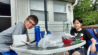 Last Friday, we met together in person for Fun Fridays for the first time in almost 3 months. Our Fun Fridays have been meeting via Skype for over a month now, but it was nice to be together in real life again. We stayed outside so we could better practice social distancing. Bible study, cake and popsicles, lots of cold drinks, fun and games outdoors.